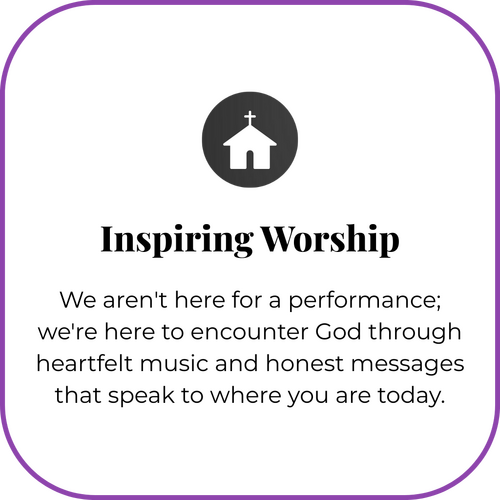 Walking through the doors of a new church can be intimidating. We get it. That’s why we do everything we can to make you feel at home the moment you arrive. From a warm cup of coffee to a friendly 'hello,' we’re here to support you on your journey.